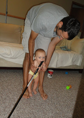 We figured we had a little while before he became really efficient at crawling to get things really baby-proofed, but we were wrong!! He was pretty slow at the whole crawling business for about 3-4 days, but now it's like he moves at warp speed. NOTHING is safe from him! Garbage can, books, Momma's purse, clean laundry, cords of all kinds, books, remotes, every type of electronic gadget, kitties. Basically everything except those things which are meant for him. :)